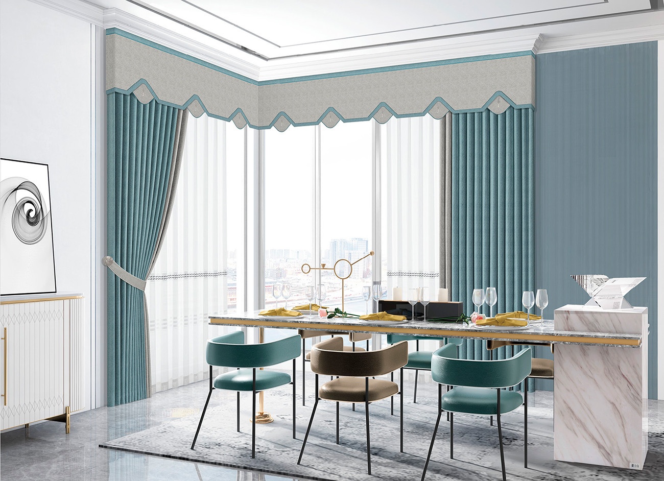 布藝的簡(jiǎn),水鴨藍(lán)的凈,營造柔和的視感。空間變得有序,讓原本忙亂的生活回歸簡(jiǎn)單