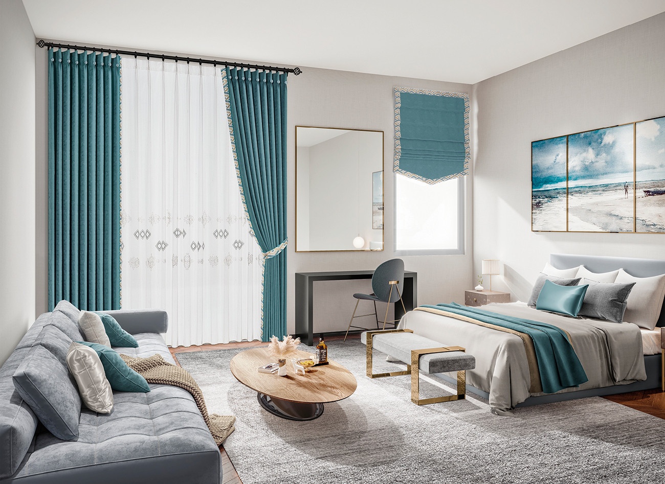 不落俗套的菱形波浪紋理打破單調的視覺,簡約有力的幾何紋理深度契合湖藍綠理性的氣質,嚴謹之中透露出充滿新意的個性表達。