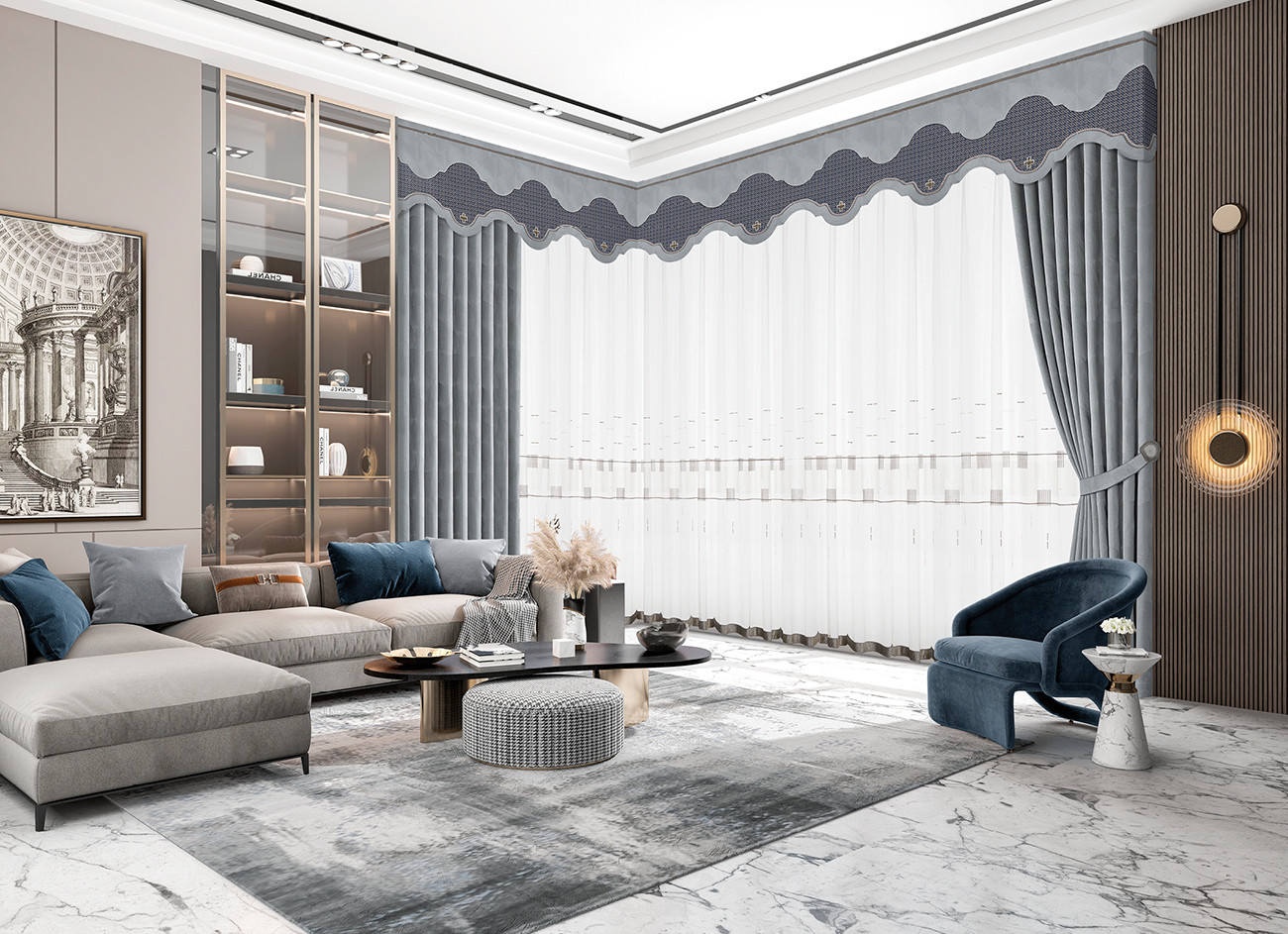 汲取灰藍經典配色,碰撞出多維度的視覺沖擊,為原本單調的空間增添時尚與藝術,品味生活每一種格調,盡享多彩生活。