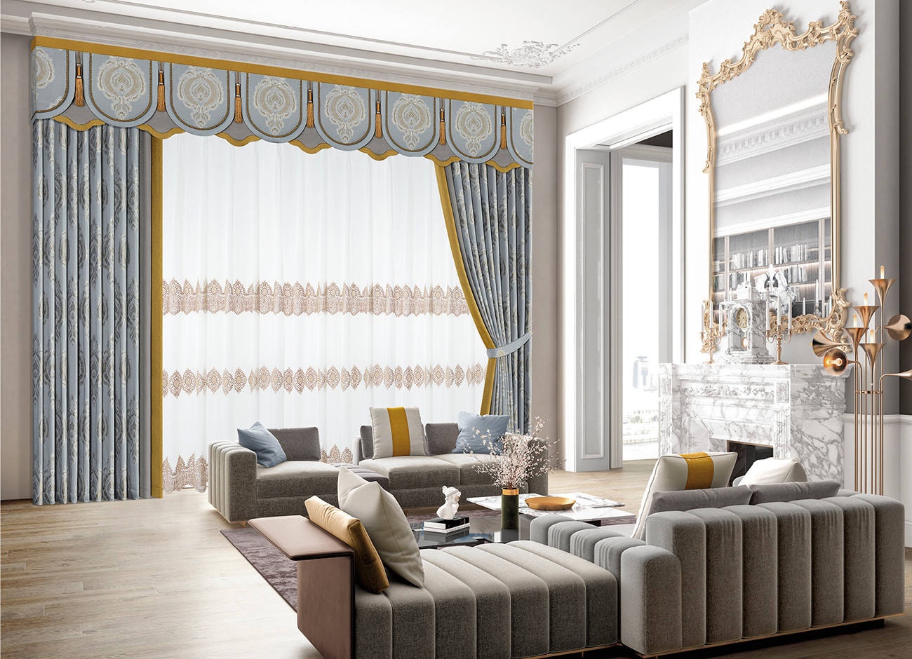 延伸古典的藝術內涵,以現代審美略微加工,組成復古又生動的紋樣?;ò昵€馥郁而濃烈,色彩產生變化,窗簾沉淀了美的故事。