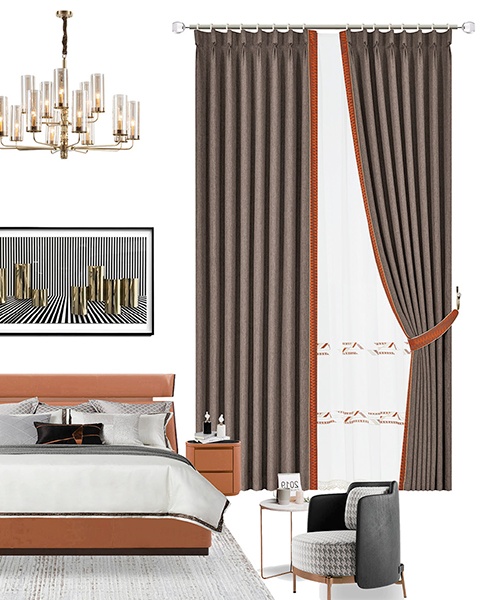 奢雅視感的窗簾,配合簾頭干凈流暢的線條、簡約而不簡單的造型,帶來視覺上的舒適平整,展現出時尚審美與經濟需求結合的奢雅設計。高級配色濃烈醇厚,如一場華麗的探戈,輕而易舉演繹出時尚、現代、摩登的生活空間。
