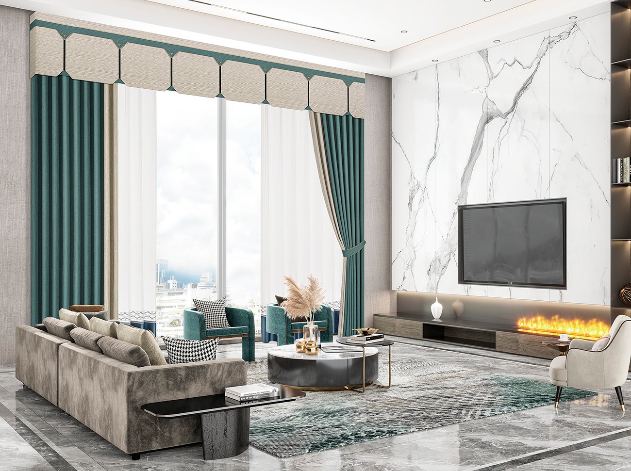 低調(diào)純凈的藍(lán)綠色如同靜待時(shí)光召喚的夢(mèng)境叢林,與米灰色流暢自然的過渡渲染出時(shí)尚而清新的視覺享受。簡(jiǎn)約而優(yōu)美的方形依次排列,強(qiáng)勢(shì)而規(guī)律的美感折射著內(nèi)涵豐富的動(dòng)人魅力,精致的金色鹿頭裝飾,讓貴族氣質(zhì)彰顯無疑。